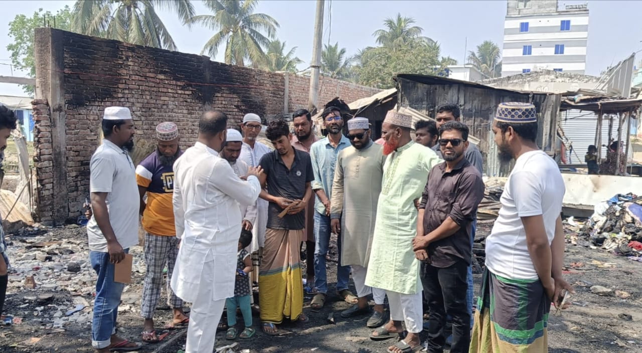 কুয়াকাটায় আগুনে পুড়ে ছাই ৮ দোকান, ক্ষতিগ্রস্তদের পাশে ছাত্রদল নেতা